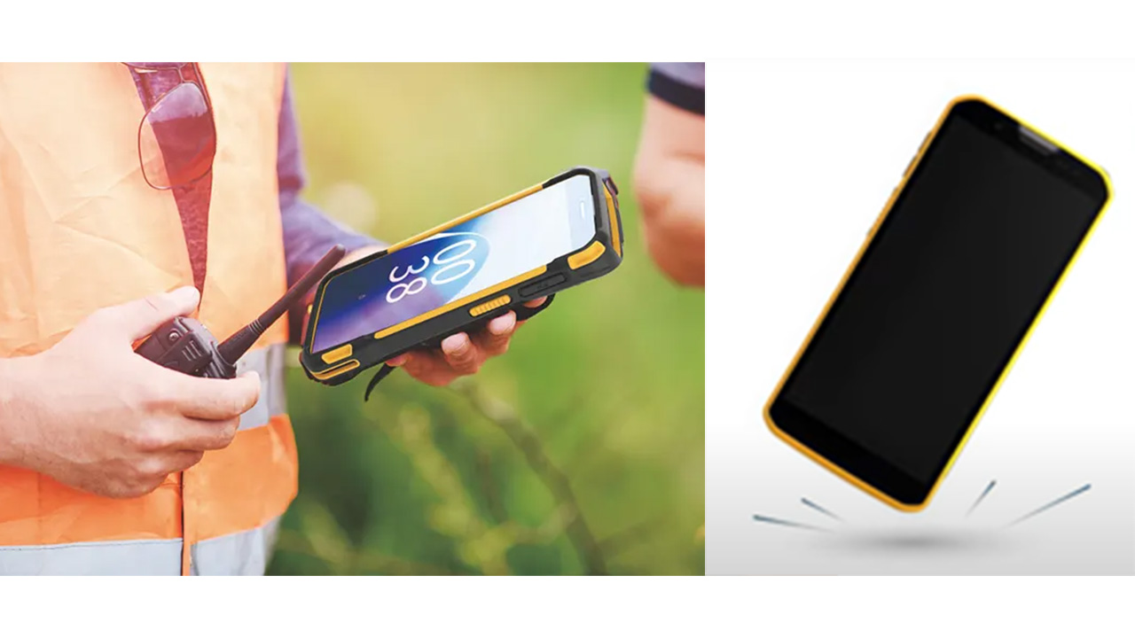 IP65/68準拠の防塵防水、1.5m隊落下性能。軍手や手袋を着用したまま、6インチの大画面をスマホ感覚でスムーズに操作が行えます。